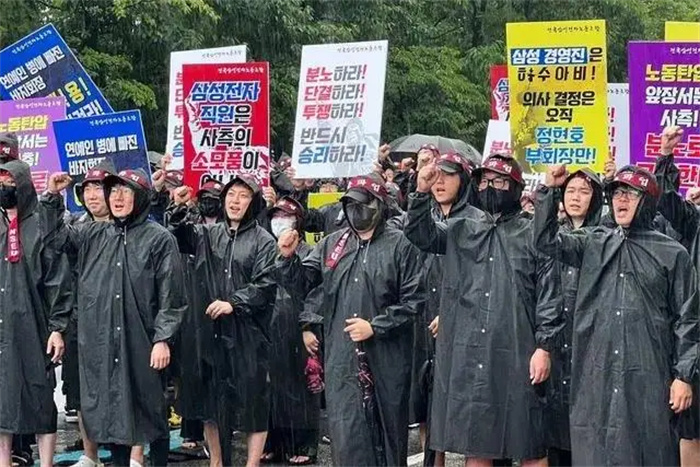 韩国三星电子旗下最大规模工会——全国三星电子工会7月8日举行总罢工,共有6540人冒雨参加。