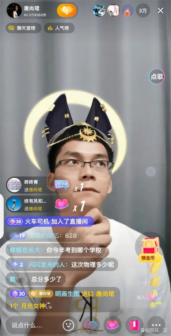 有人固执认为唐尚珺不说实话,他直播肯定挣着大钱了。其实不然,一来他直播的次数不多;二来每一场直播间虽然都有好几万人,但是真正给他刷礼物的没有几个人,而且发的基本上都是小花小草的,很少见到刷跑车、嘉年华、某音一号的。挣是挣了点,估计不多。