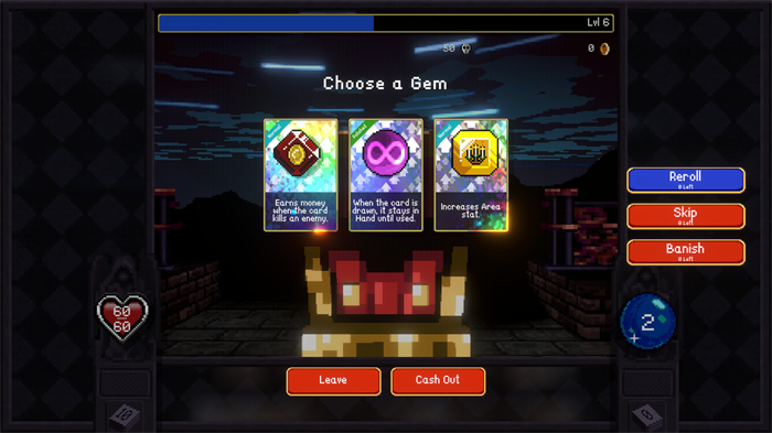 牌组构筑:积累经验升级以解锁新的卡牌,撞开宝箱获得自定义宝石和强化,进化武器并召唤幸存者来触发连锁反应,自可立于不败之地。