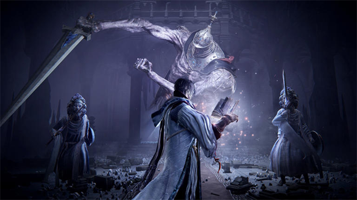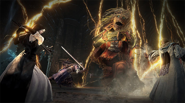 在试玩中,我们还尝试攻略了两次全新黑夜王“安定者们”,注意是复数。他们就是宣传片中出现的七位一同出现的集群型 Boss,一次登场 7 名。安定者的主要攻击方式除了近战外,还有一种蓄力后的圆形范围攻击,建议及时躲避。在血条打到约 7 成、首次击败全部安定者后,他们的头领还会释放群体复活,复活后的安定者攻击欲望更强,动作更快,并且配合得也更好了,还会追加一个将玩家钉在十字架兵造成大量伤害的新技能 —— 不客气点的说就是会像疯狗一样追着玩家猛锤,我很难想象单人模式该怎么打。试玩时我们三人将这群 Boss 分别引导了很远,方便各自击破,但危险之处在于不小心战死了不太好救,毕竟太远。