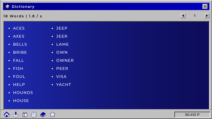 目前为正式版,支持单人游玩,无多人联机模式。定价以 Steam 商店页面最新信息为准,推测为低价休闲游戏定位,适合文字游戏爱好者或有词汇积累需求的玩家入手。后续是否会更新中文语言包、新增词汇库或拓展玩法模式,需以开发者后续公告为准。