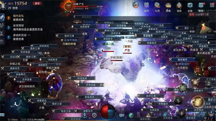 服务器准时开启后,早已通过官网预约的玩家们从四面八方涌入,新手出生点瞬间被人潮填满。得益于官方强调的“万人同服”技术,虽然角色昵称层层叠叠“叠罗汉”,但游戏运行依然保持了流畅。4K重铸下的新手角色塞满了屏幕,显得人山人海,气势非凡。