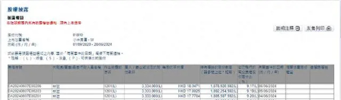 披露易网站显示,6月4日,林斌出售333.3万股股份,平均价为17.7704港元/股,套现约5922.87万港元;6月5日,再次出售333.3万股,平均价为17.8025港元/股,套现约5933.57万港元;6月6日,又出售333.4万股,平均价为18.0471港元/股,套现约6016.90万港元。