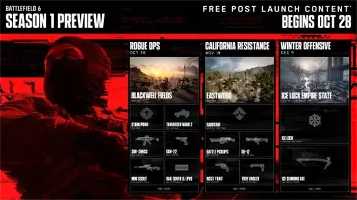 DICE近日公布了部分《战地6》第一赛季的内容,该赛季将于10月28日正式开启。
