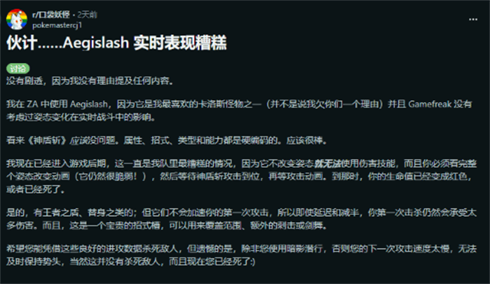 如果你已经玩过《宝可梦传说:Z-A》,不妨试想一下,坚盾剑怪需要首先执行一次形态切换动作,然后再释放战斗技能,这位强大的人气宝可梦在本作几乎无法发挥全部实力。对于坚盾剑怪的粉丝来说,这绝对是一场打击。