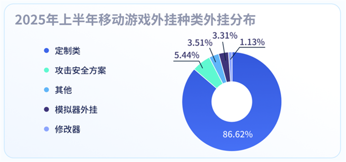 在移动外挂样本中,定制类的外挂占比高达 86.62%,相较 2024 年同期的 97.60% 有所下降,但仍达到了较高占比。