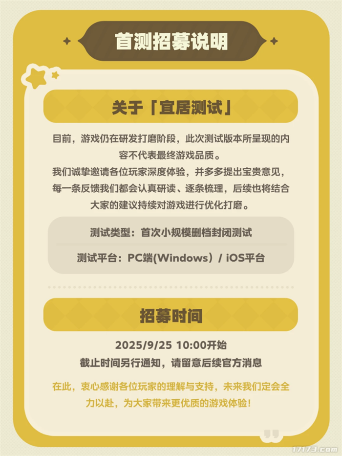目前,《星布谷地》「宜居测试」资格招募已全面开放。玩家需前往官网完成预约,并填写问卷以参与资格抽取。