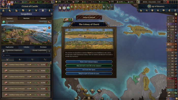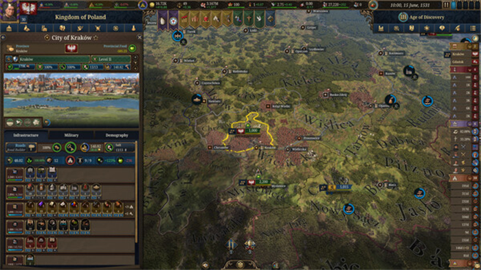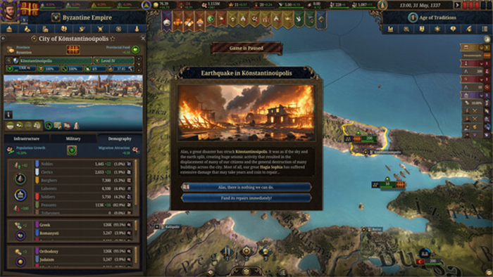 在这些基础上,游戏还额外增加了独树一帜的核心玩法。比如革命性的人口系统,在这一代作品,首次加入了人口单位,他会模拟每个人口的文化、宗教以及社会阶层,这些因素都会导致各种意想不到的情况发生。但玩家无需担心内容太过复杂而不好操作。游戏加入了AI功能,可以协助玩家处理这些复杂的问题,玩家只需要充当领导的角色即可。